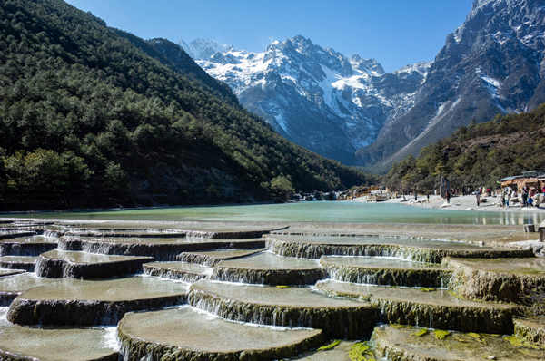 Morning,drive from Dali to Lijiang. after hotel check-in, visit the stunning scenery of Jade Dragon Snow Mountain and White Water River, featuring the iconic 13 mountain peaks. The snow-clad mountain, shrouded in mist, resembles a majestic jade dragon amidst the clouds. Geologists estimate its formation over 230 million years ago during the era of dinosaurs. The White Water River originates from the melting snow of Jade Dragon Snow, too frigid for swimming. During summer, visitors relish collecting and refreshing themselves with its pristine waters.